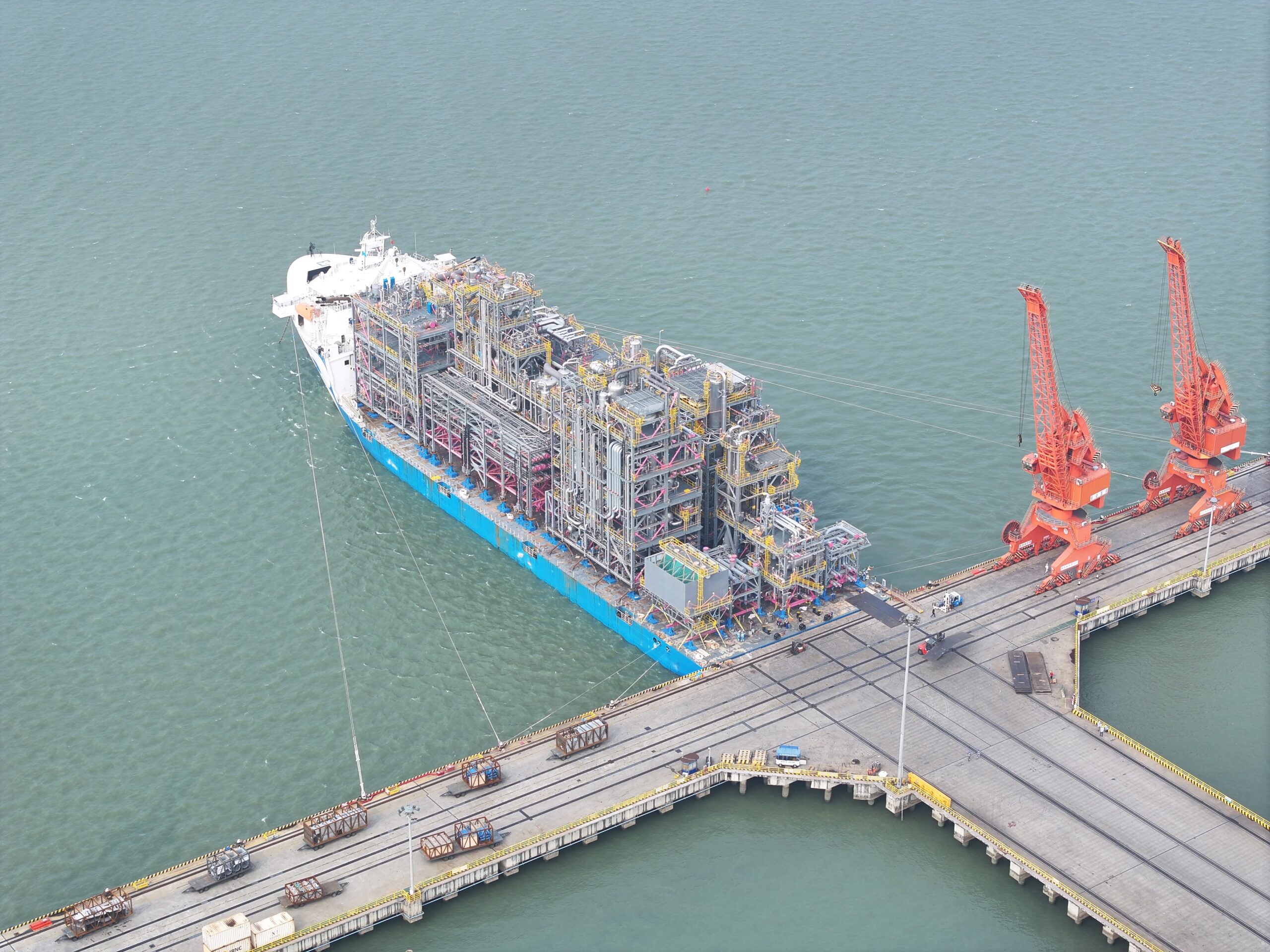 Last week, our team in China warmly welcomed the MV Bigroll Bering as it arrived in China waters. Renowned for its innovative design, the MV Bigroll Bering is a module carrier capable of transporting the heaviest and largest modules in the world. During its visit, the vessel was entrusted with the task of loading the last material for an MDI (methylene diphenyl diisocyanate) plant in the USA , capitalizing on its exceptional heavy-lift capabilities.
